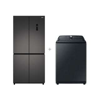 [삼성+하이얼] 그랑데 통버블 세탁기 21kg 블랙 캐비어+4도어 냉장고 433L 스페이스 그레이 [WA21A8376KV+HRS445MNG]
