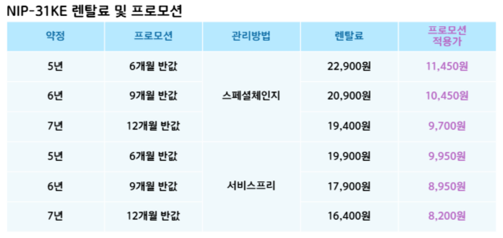 NIP-31KE 코웨이 [코웨이] 프라임 인덕션 제품분류 전기레인지 기능 인덕션 AS기간 렌탈기간내 최저 렌탈가 월 16,400 (렌탈가) 제휴카드 할인가 월 (렌탈가) 5년 6년 7년 서비스프리 방문관리 할인 제휴카드 보기 렌탈신청 장바구니