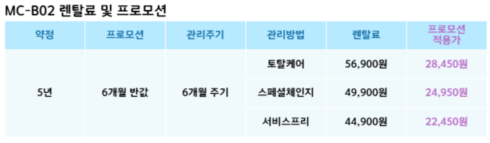최저 렌탈가 44,900 (렌탈가) 제휴카드 할인가 (렌탈가)