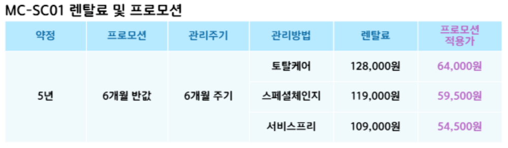 9860-1050 빠르고 간편한 렌탈 상담신청 개인정보 수집/이용 내용보기 동의 미동의 ※ 개인정보수집이용 동의 1. 개인정보의 수집 및 이용목적 : 원활한 렌탈 상담 및 주문을 위한 참조자료로 아래와 같은 항목의 개인정보를 수집하고 있습니다 2. 수집하려는 개인정보 항목 : 필수 수집항목 : 이름, 연락처 3. 개인정보의 보유 및 이용기간 : 수집된 정보는 이용자의 정보 삭제 요구 시까지 보관, 활용하며 수집 및 이용 목적이 달성된 후 해당 정보를 지체 없이 파기합니다. 단순 상담고객 3개월 후 파기 / 계약 고객 12개월 후 파기 4. 개인정보 취급 담당자 : 이름 : 김대욱연락처 : 9860-1050 5. 개인정보 수집 동의거부 사항 : 이용자의 개인정보는 원활한 상담을 위해 수집하고 있으며, 동의하지 않을 경우 상담 및 주문이 제한됩니다. [닫기]
