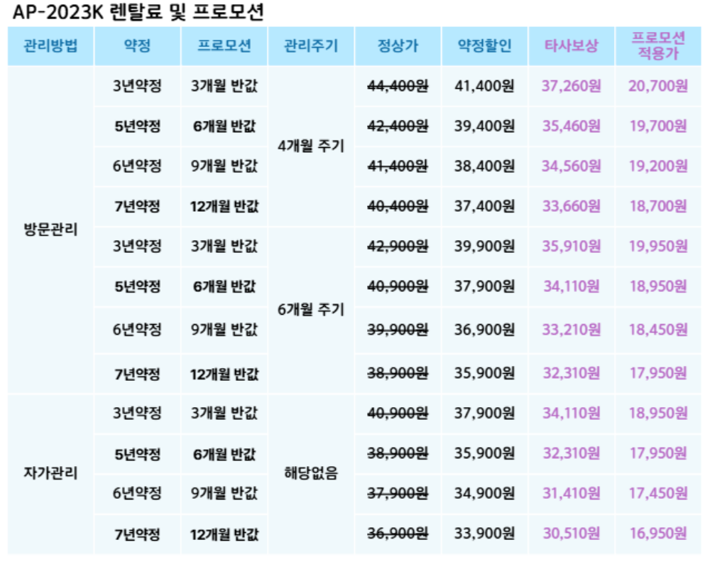 최저 렌탈가 30,510 (렌탈가) 제휴카드 할인가 (렌탈가)
