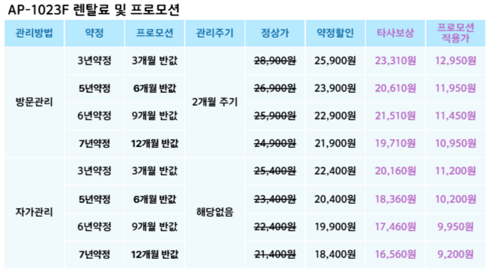최저 렌탈가 16,560 (렌탈가) 제휴카드 할인가 (렌탈가)