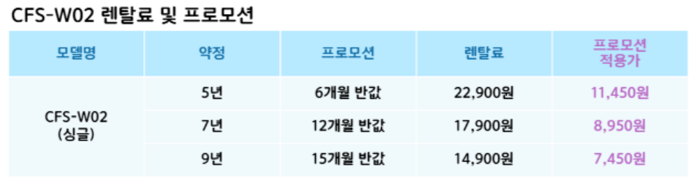 CFS-W02 코웨이 [코웨이] 프레임 내추럴오크 싱글 제품분류 침대 AS기간 렌탈기간내 최저 렌탈가 월 14,900 (렌탈가) 제휴카드 할인가 월 (렌탈가) 5년 7년 9년 할인 제휴카드 보기 렌탈신청 장바구니