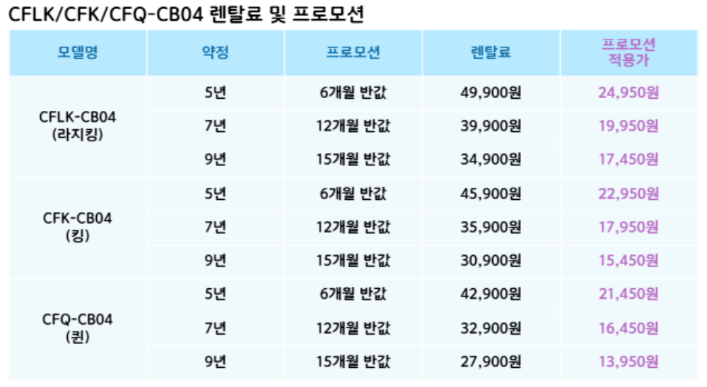 CFQ-CB04,CFK-CB04,CFLK-CB04 코웨이