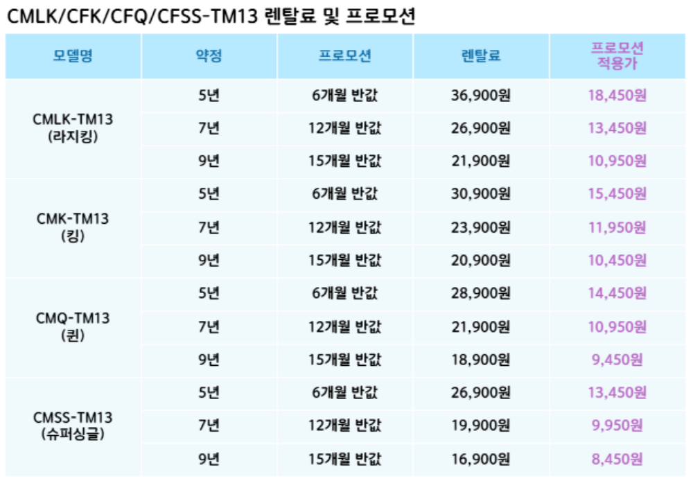 CFSS-TM13,CFQ-TM13,CFK-TM13,CFLK-TM13 코웨이