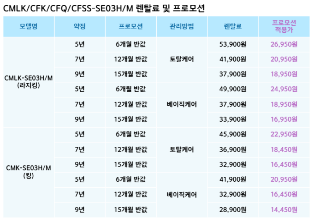 CMSS-SE03,CMQ-SE03,CMK-SE03,CMLK-SE03 코웨이